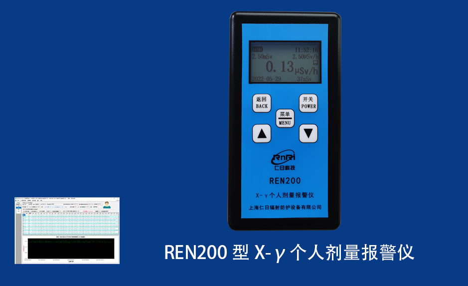 REN200型X、γ個(gè)人劑量報(bào)警儀(又叫X、γ輻射個(gè)人劑量當(dāng)量HP(10)監(jiān)測(cè)儀)內(nèi)置高靈敏度蓋格計(jì)數(shù)管為探測(cè)器,主要用來監(jiān)測(cè)各種放射性工作場(chǎng)所中個(gè)人的X、γ以及硬β射線的輻射,具有響應(yīng)快,測(cè)量范圍寬的特點(diǎn)。能顯示工作場(chǎng)所的劑量當(dāng)量率和累積劑量,更換電池時(shí),日期及累積數(shù)據(jù)能永久保存。可選配RenRiPersonal個(gè)人劑量管理軟件,該軟件可存儲(chǔ)多個(gè)人的歷史數(shù)據(jù),能記錄日累積、月累積、年累積、輻照時(shí)長(zhǎng)、計(jì)算平均劑量率、扣除或不扣除本底輻射,且以文字和圖譜的方式展現(xiàn)數(shù)據(jù)。廣泛應(yīng)用于核電站、加速器、鋼鐵、化工、同位素應(yīng)用、醫(yī)院、工業(yè)X、γ無損探傷、放射醫(yī)療、鈷源治療、γ輻照、放射性實(shí)驗(yàn)室、核設(shè)施周